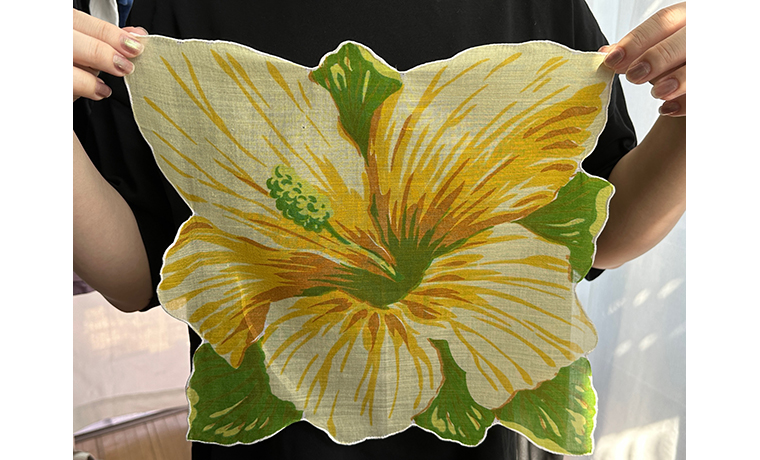 H- 011 ハンカチ スカラップハイビスカス イエロー