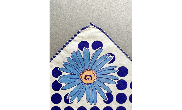 ハンカチ マーガレットと水玉薄いコットン地です30cm X 29cm縁かがりのストライプがアクセントになっていますmade in USA¥3850