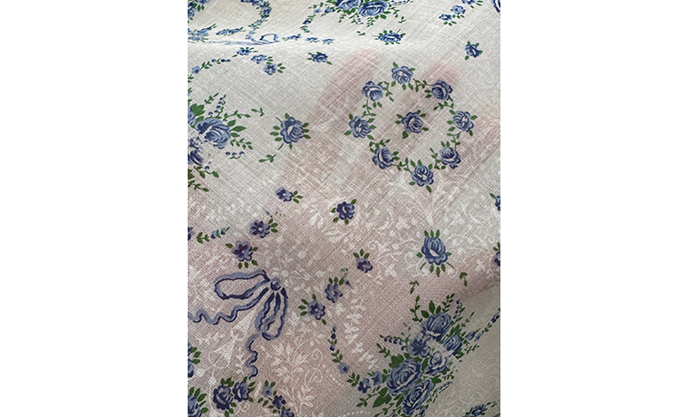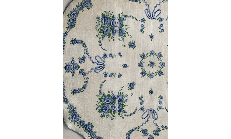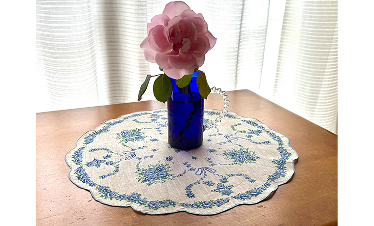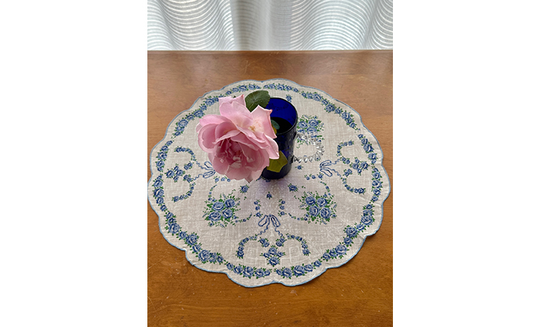 H- 006 ハンカチ 丸型スカラップバラ柄