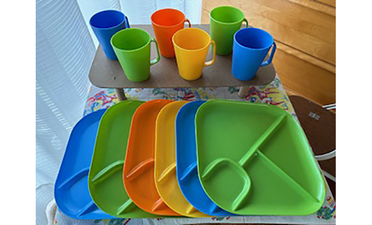 プラスチック製食器(マグ、プレート各6個ずつ)が入っています。