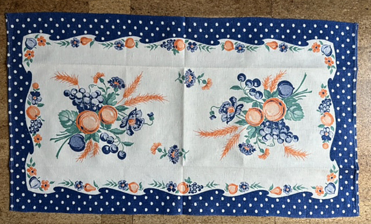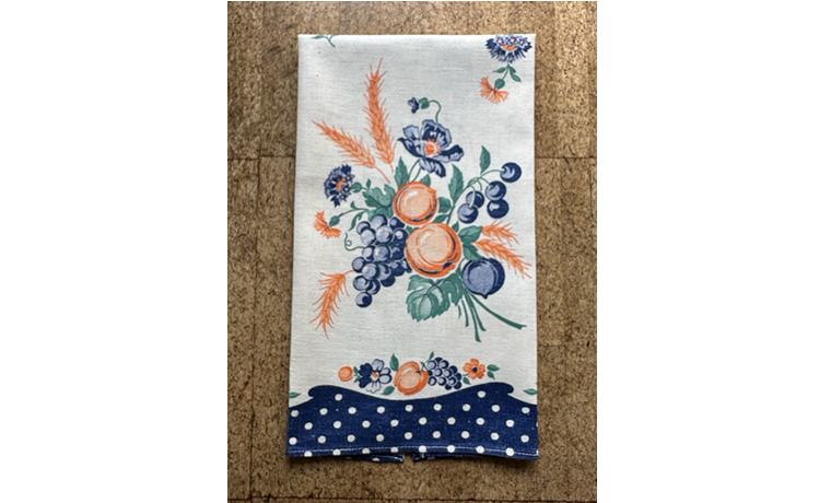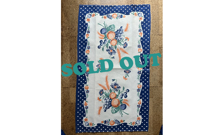 キッチンタオル フルーツと花柄Cotton75%、Linen25%43cm x 75cm1950年代頃STARTEX MILLS タグ付きほぼ未使用のきれいな状態です元々はお皿を拭くなどキッチンユーズのクロスですが、コーヒーテーブルや家具の上に敷いたり飾りにも!made in USA¥4,950(税込) SOLDOUT